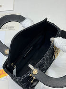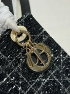 CD Lady Bag 20cm Black Lambskin Black White Canvas
