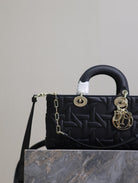 Lady D-Joy Bag 26 Black Graphic Lambskin