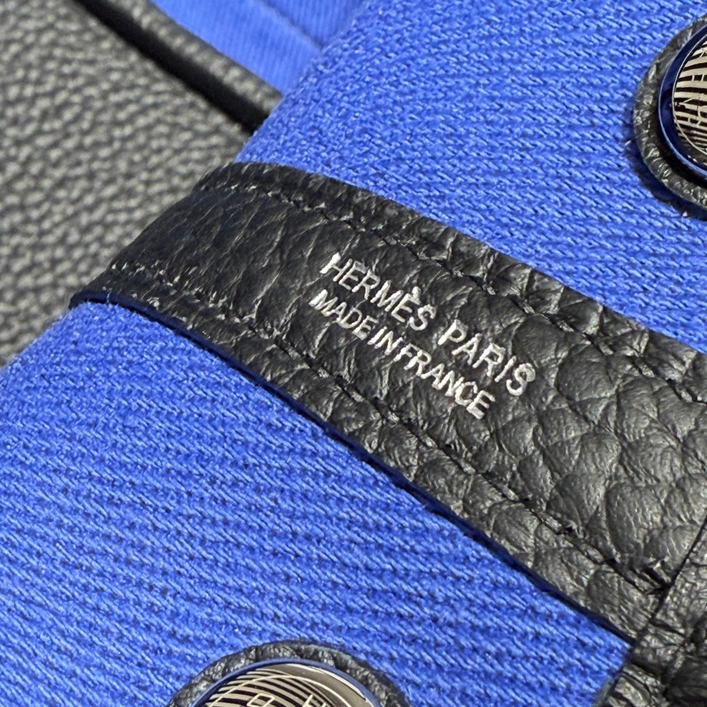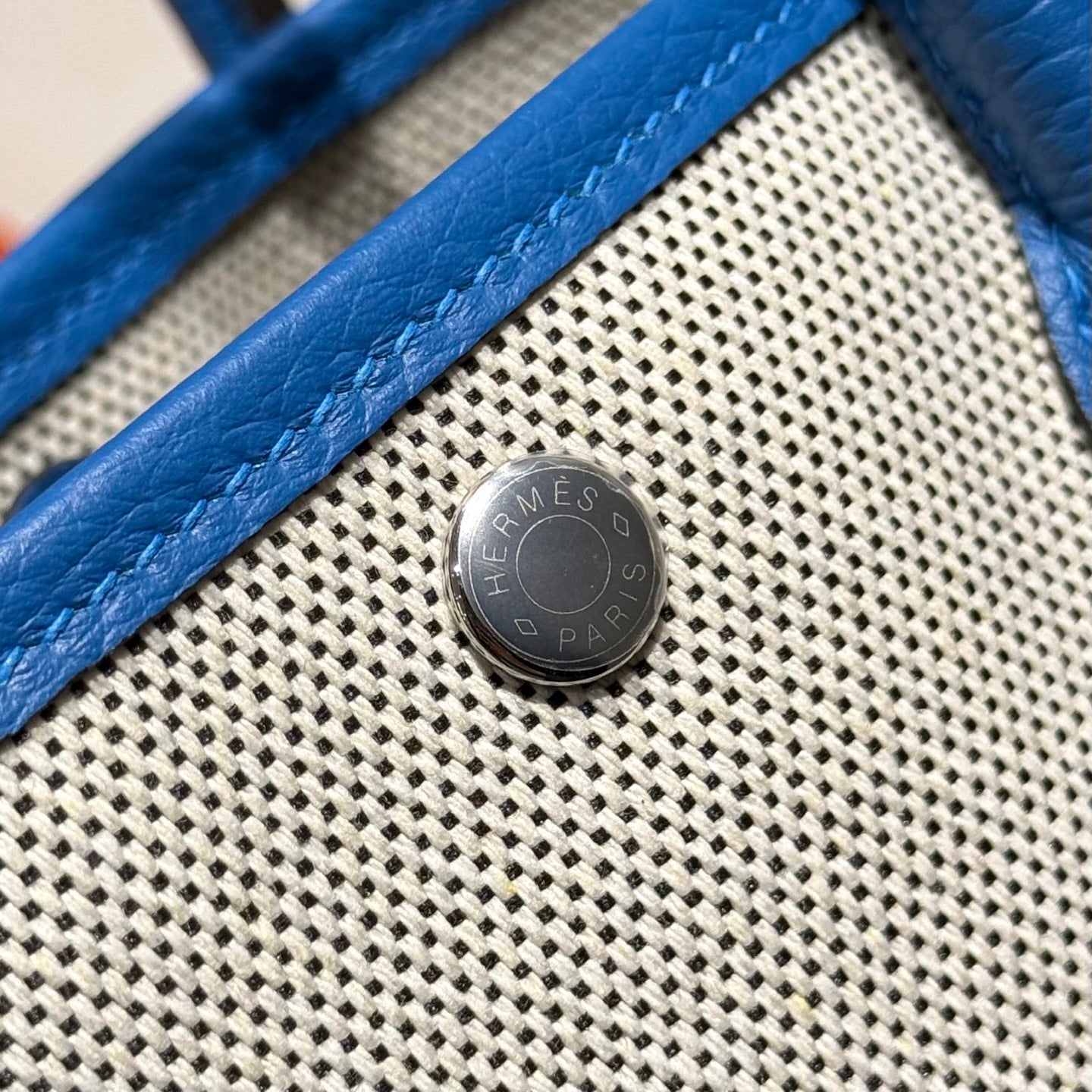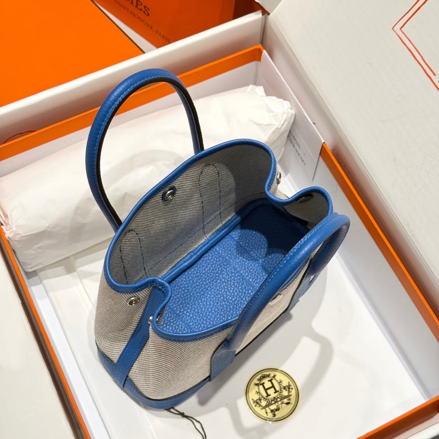 HM Garden Party 30cm Bag Blue Togo Cream Canvas
