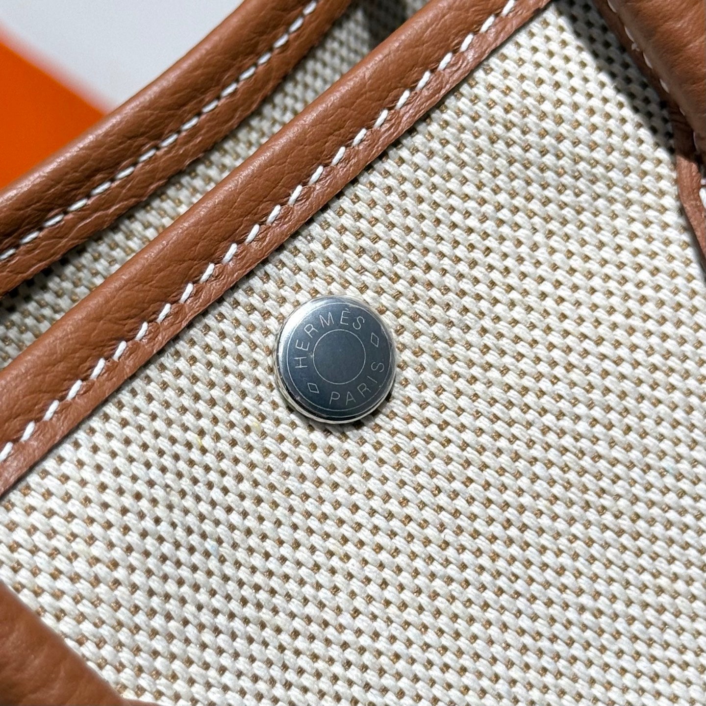 HM Garden Party 30cm Bag Etoupe Togo Orange Canvas