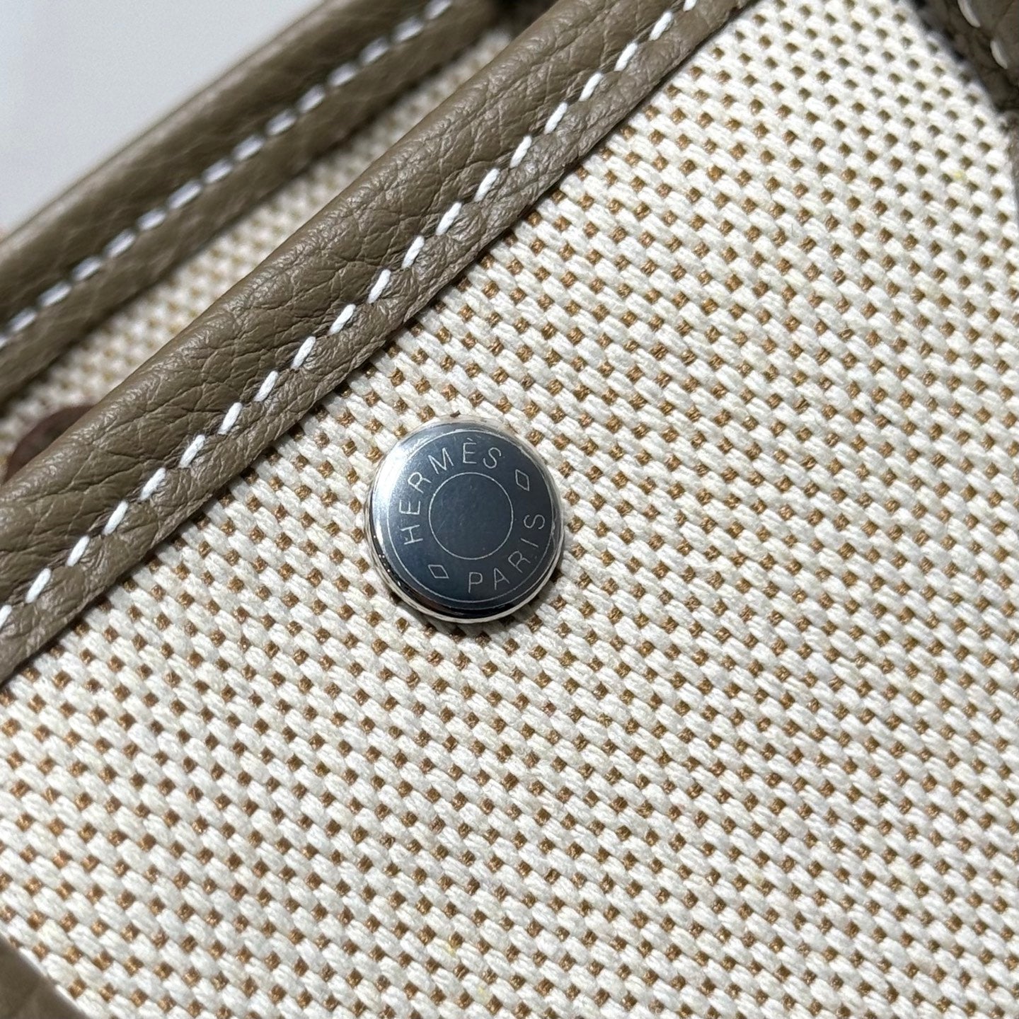 HM Garden Party 30cm Bag Gold Togo Dark Beige Canvas