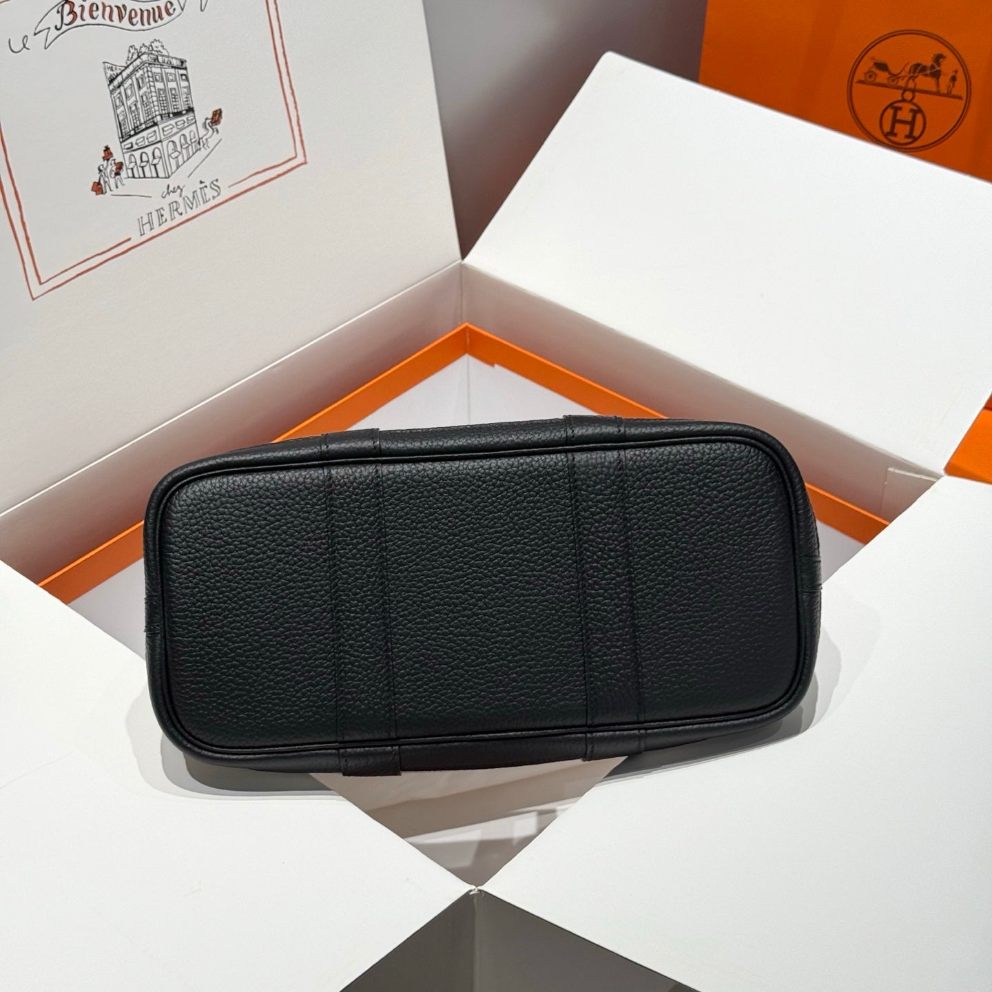 HM Garden Party 30cm Bag Black Togo White Canvas