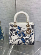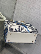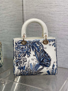 Lady Bag 20cm White Calfskin Blue Black Embroidery
