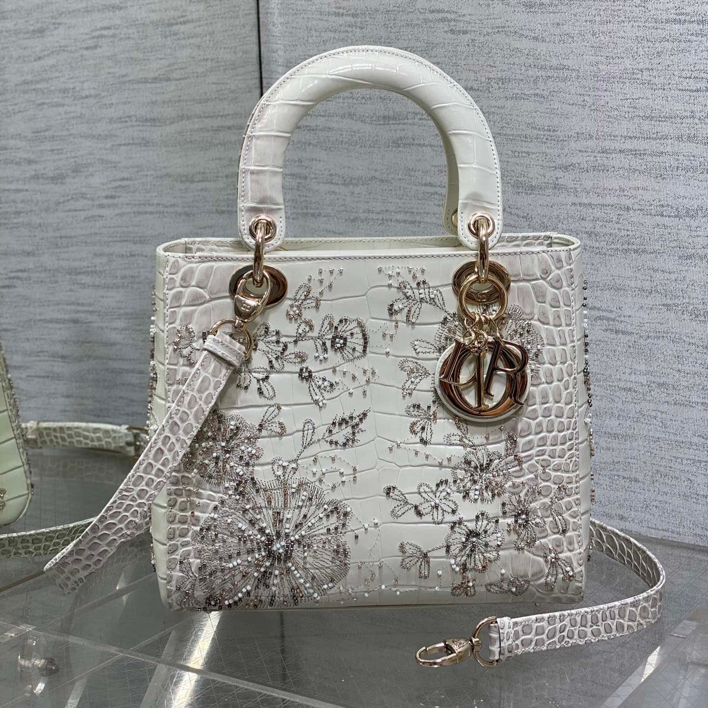 Lady Bag 17cm White Crocodile Leather Light Gold Hardware