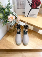 Valentino Rockstud Espadrille Sandals Beige Gray Leather 240598