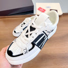VL7N LOW-TOP WHITE CALFSKIN AND BLACK FABRIC SNEAKER WITH BANDS