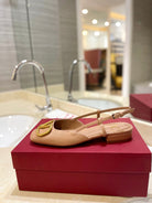 VLOGO BEIGE LEATHER SLINGBACK FLATS