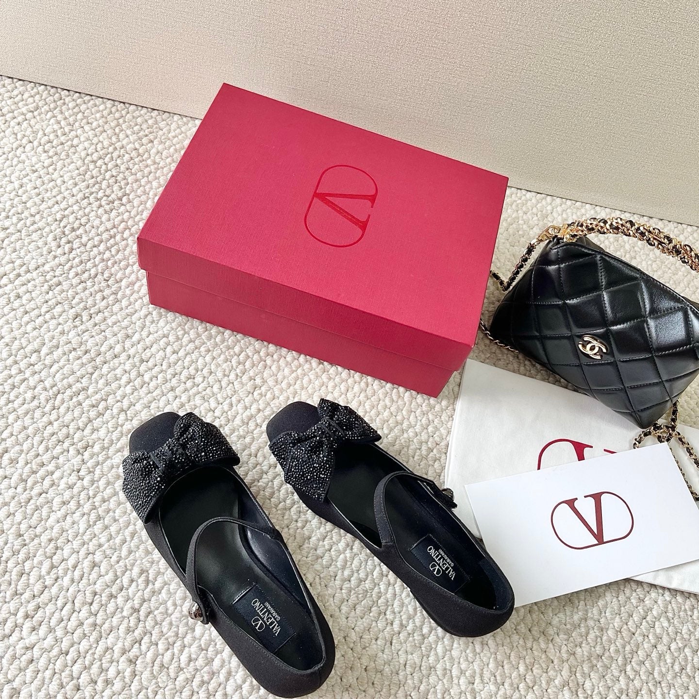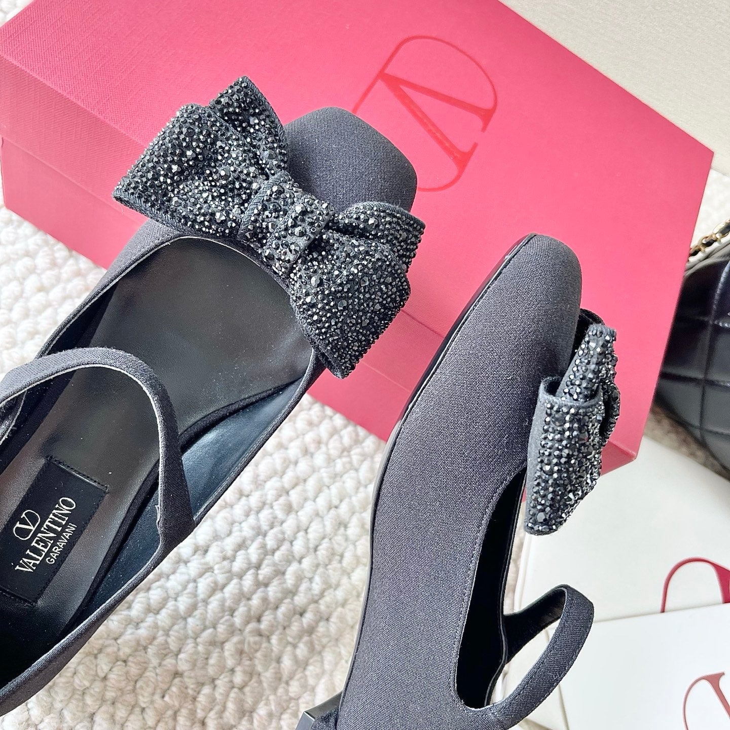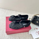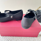 VT 25 Bow Diamond Marry Jane Flat Black Silk