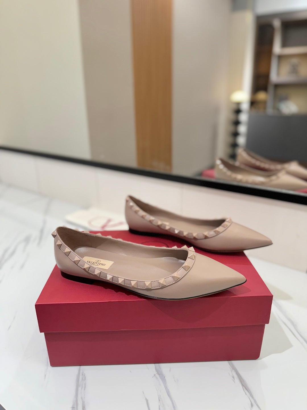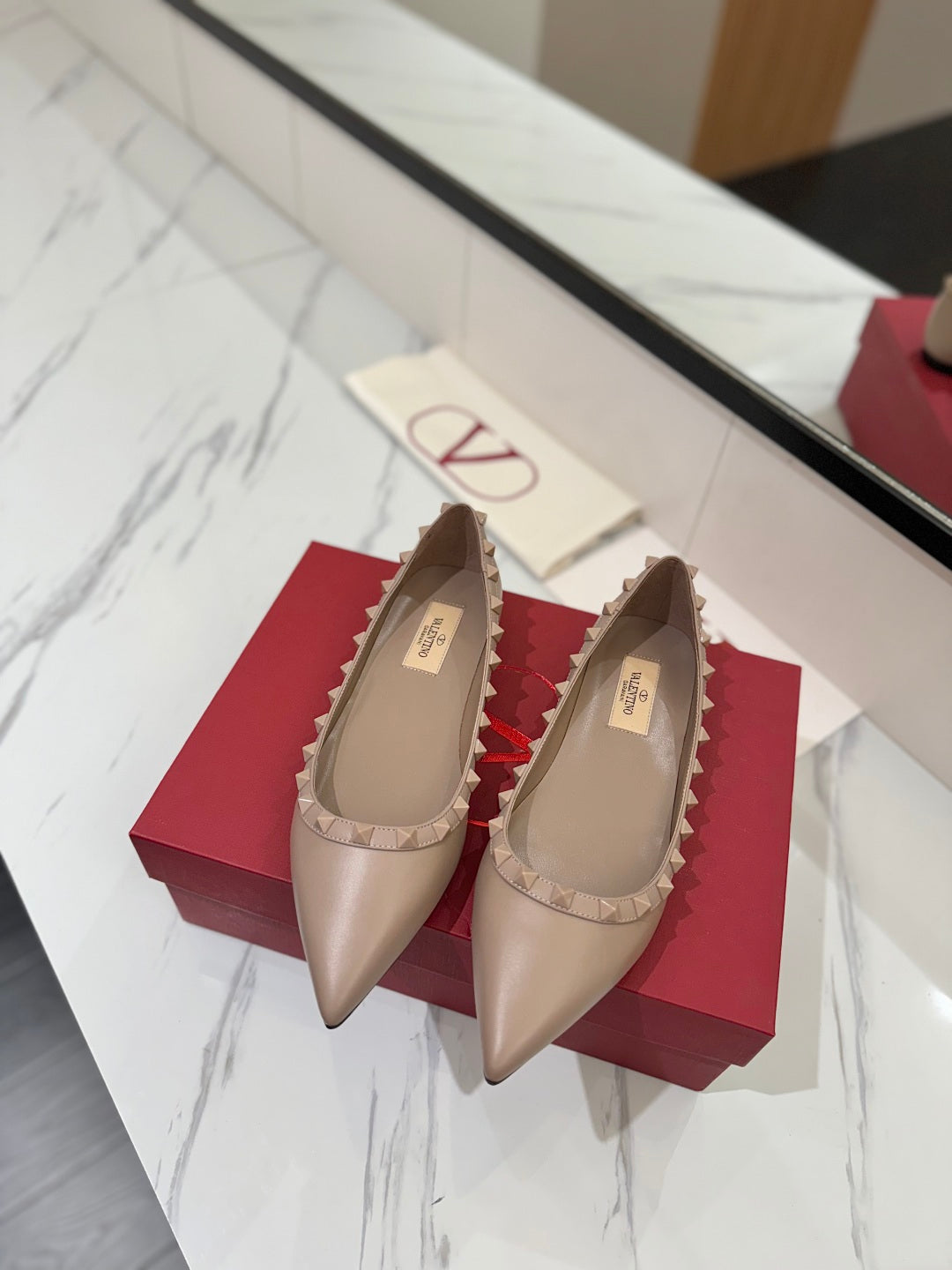 VT Rockstud Ballet Flat Nude Goatskin