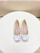 ROCKSTUD PATENT LEATHER BALLERINA IN WHITE SILK