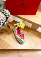 GARAVANI PRINTED COLORFUL CANVAS HIGH SANDAL 95 MM WITH EMBROIDERED LOGO