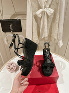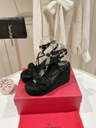 Garavani Rockstud Wedge Sandals 100mm In Black Calfskin And Nylon Rope 829395