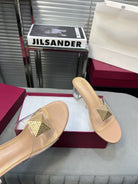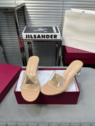 Heeled Sandals 6cm with Crystal Square Buckle Beige