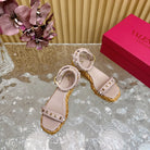 Rockstud Flatform Sandal 45mm In Rose Pink Calfskin And Raffia 102846