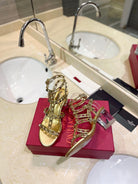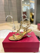 ROCKSTUD SANDAL WITH STRAP IN GOLD CALFSKIN 60 MM
