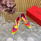 Valentino Wedge High Heel Lace-Up Sandals 85mm In Colorful Canvas Fabric And Raffia 814621