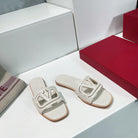 Vlogo Cut-Out White Calfskin Slide Sandal