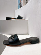VT Moon Slides in Leather Black Cowhide 292857