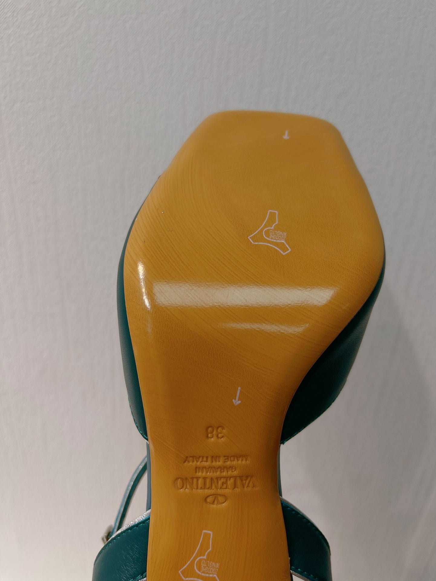 VT Sandals Heels 70mm Emerald Green Cowhide 292780
