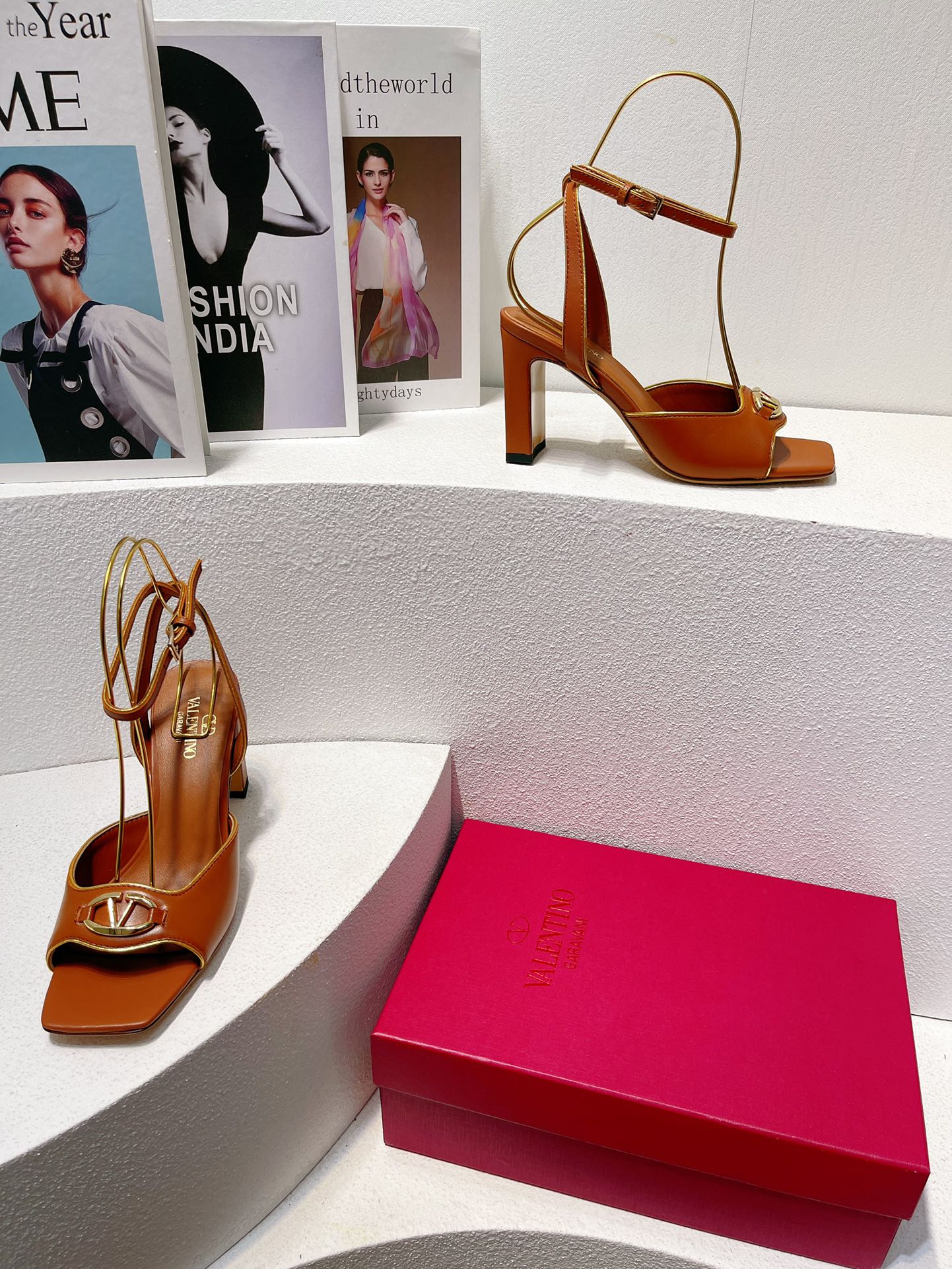 VT Sandals Heels 70mm Brown Cowhide 292783