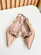 Rockstud Bow Slingback Rose Cannelle Calfskin With Matching Studs