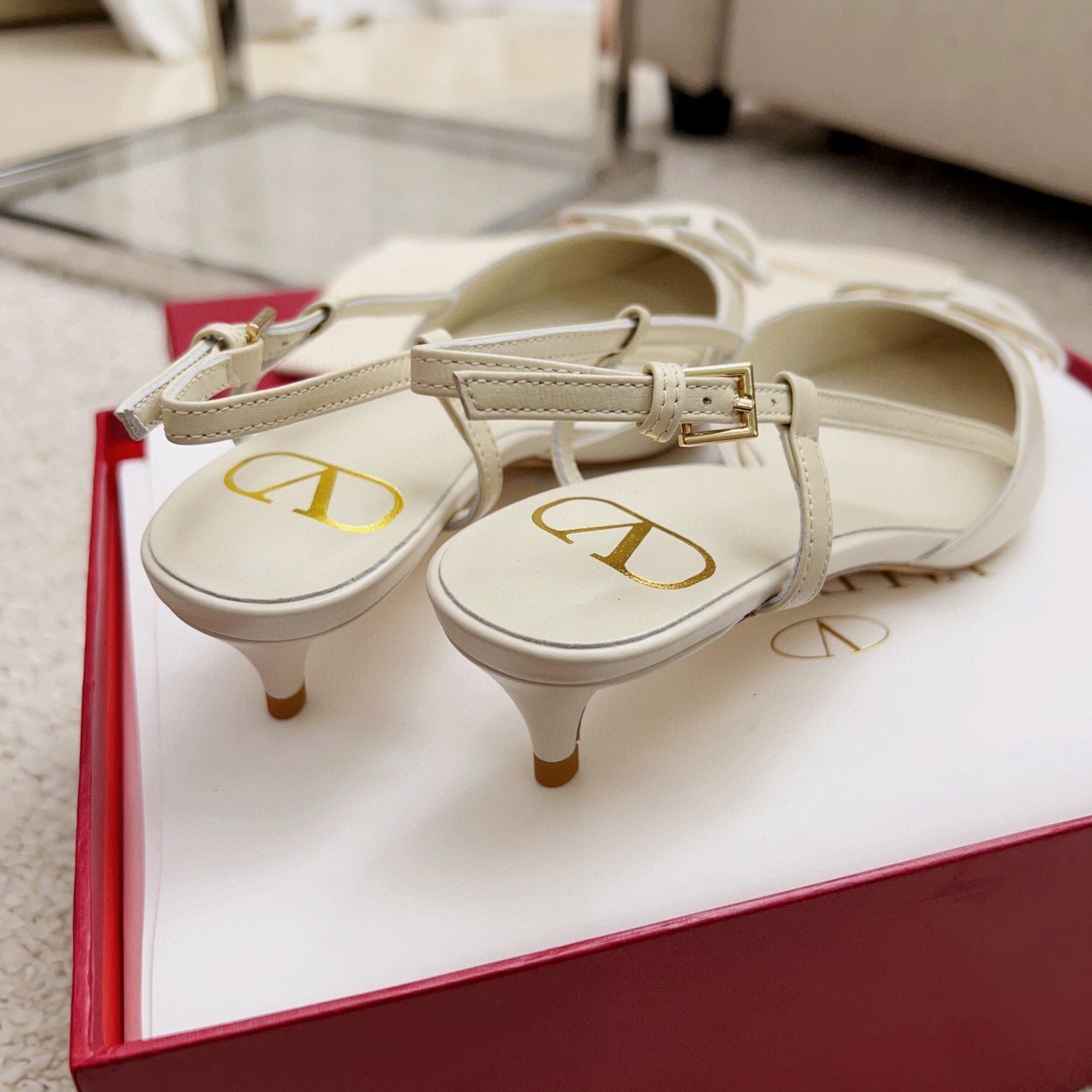 Valentin Vlogo Signature Slingback Ivory Calfskin