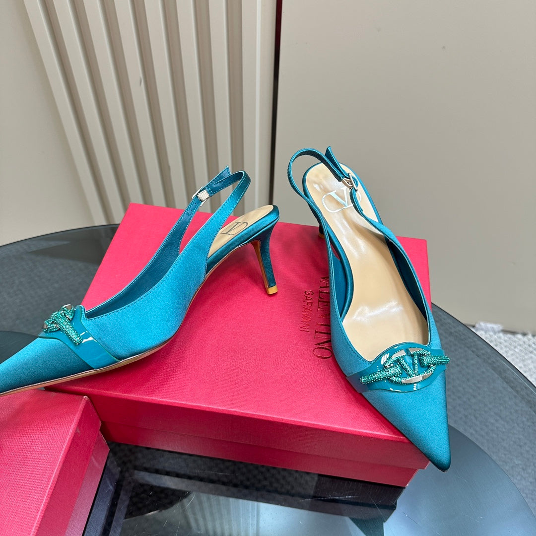 Valentino Slingback Pump 65mm In Duck Neck Blue Mix Beige Lambskin 999015