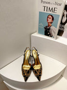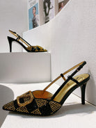VT High Heeled Slingbacks Black Gold Sheepskin 292827