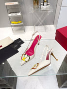 VT Vlogo Signature 75mm Pink White Slingback Sheepskin
