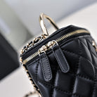 CC 24K Vanity Top Handle 17cm Black Lambskin Silver Hardware