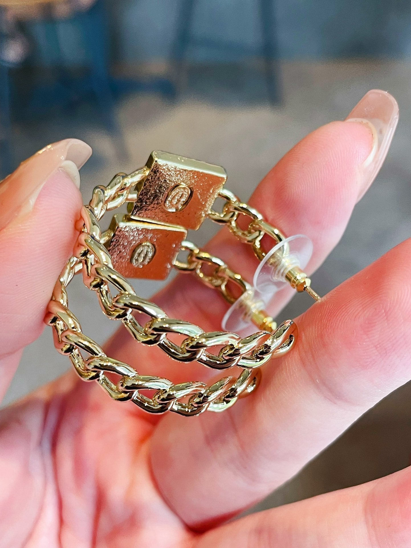 DOUBLE C LOGO GOLD STUD EARRINGS