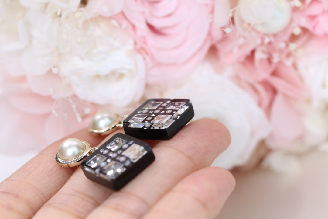 DOUBLE C PEARL SILVER DIAMOND EARRINGS