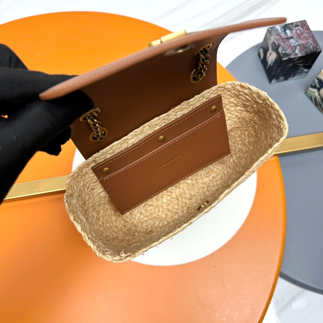 YSL Jamie Lucky Bag Beige Brown Raffia 339402