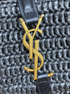 le 37 woven raffia 20cm black calfskin