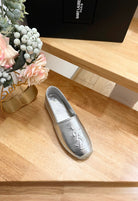 SL YVES EMBOSSED LOGO SLIP ON SILVER CALFSKIN