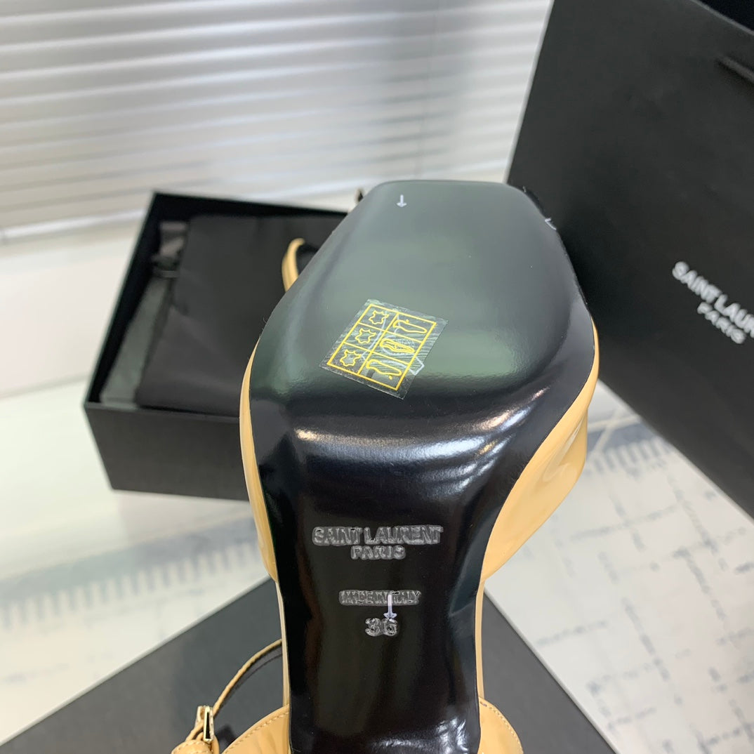 SL FISH MOUTH SANDAL PUMP FLAX POLISHED CALFSKIN