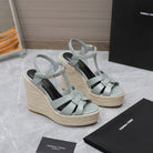 SL TRIBUTE WEDGE SANDALS TEMPERED GREY POLISHED CALFSKIN