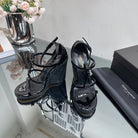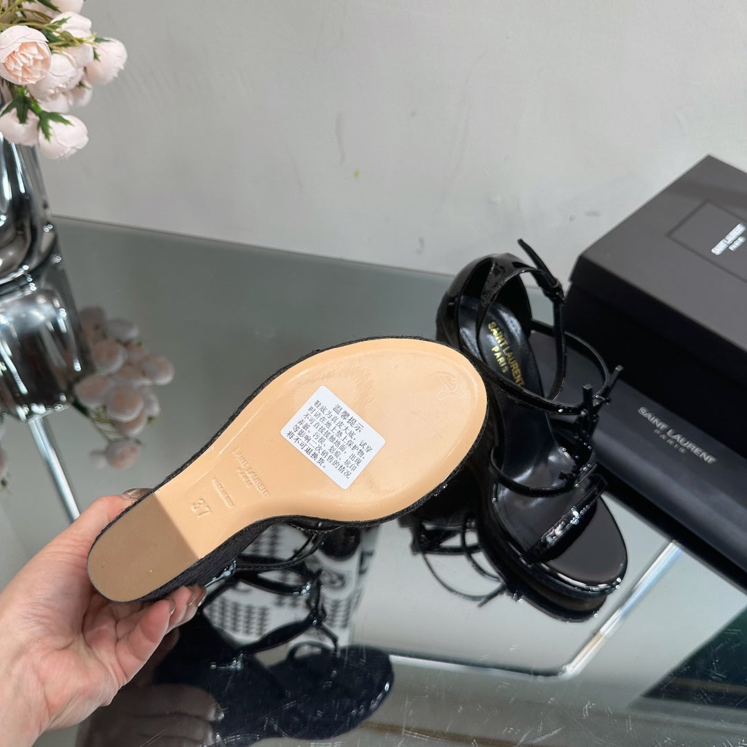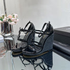 SL CASSANDRA WEDGE ESPADRILLES BLACK POLISHED CALFSKIN
