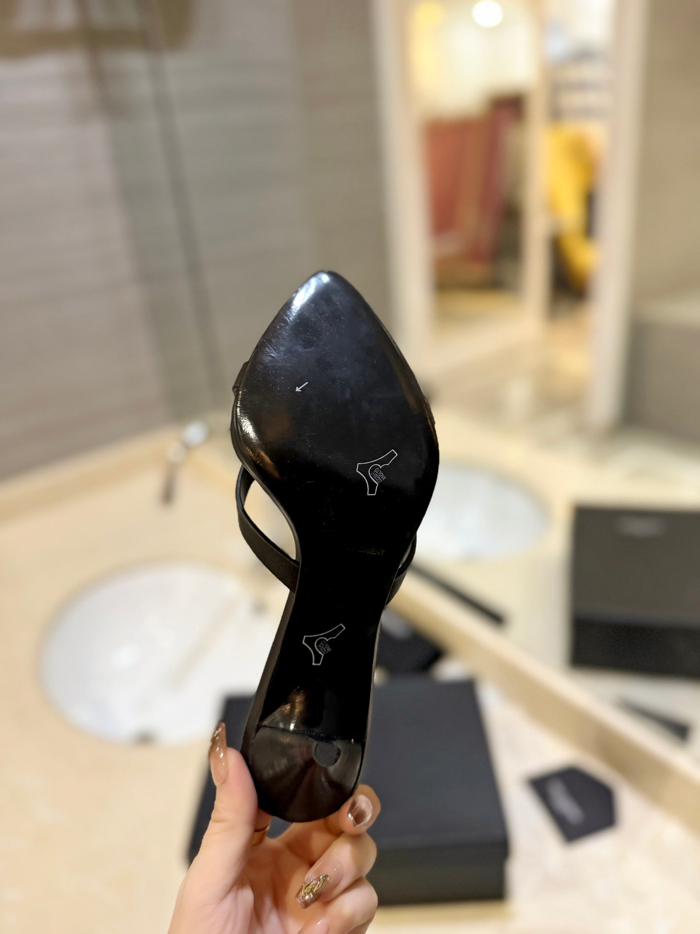 SL OPEN-TOES HIGH HEELS SLIPPER BLACK CALFSKIN