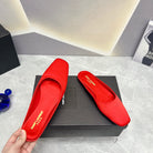SL SQUARE TOE FLAT MULES RED SATIN