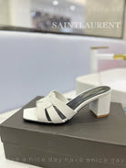 SL TRIBUTE MULES WHITE CALFSKIN