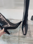 YSL 25 High Heeled Long Boot Black Cowhide 522263