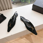 SL BABYLONE SLINGBACK FLAT BLACK SATIN