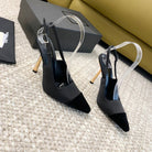 SL CAP-TOE SLINGBACKS BLACK SATIN AND VELVET