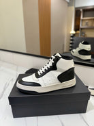 MID-TOP SNEAKERS IN WHITE MIX BLACK PERFORATED LAMBSKIN