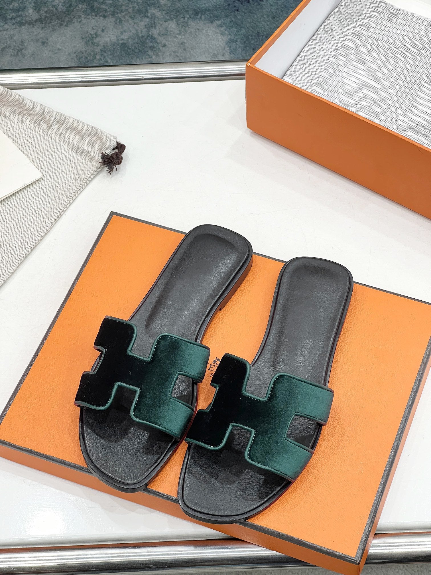 - Material: Sandal in velvet goatskin with iconic "H" cut-out.