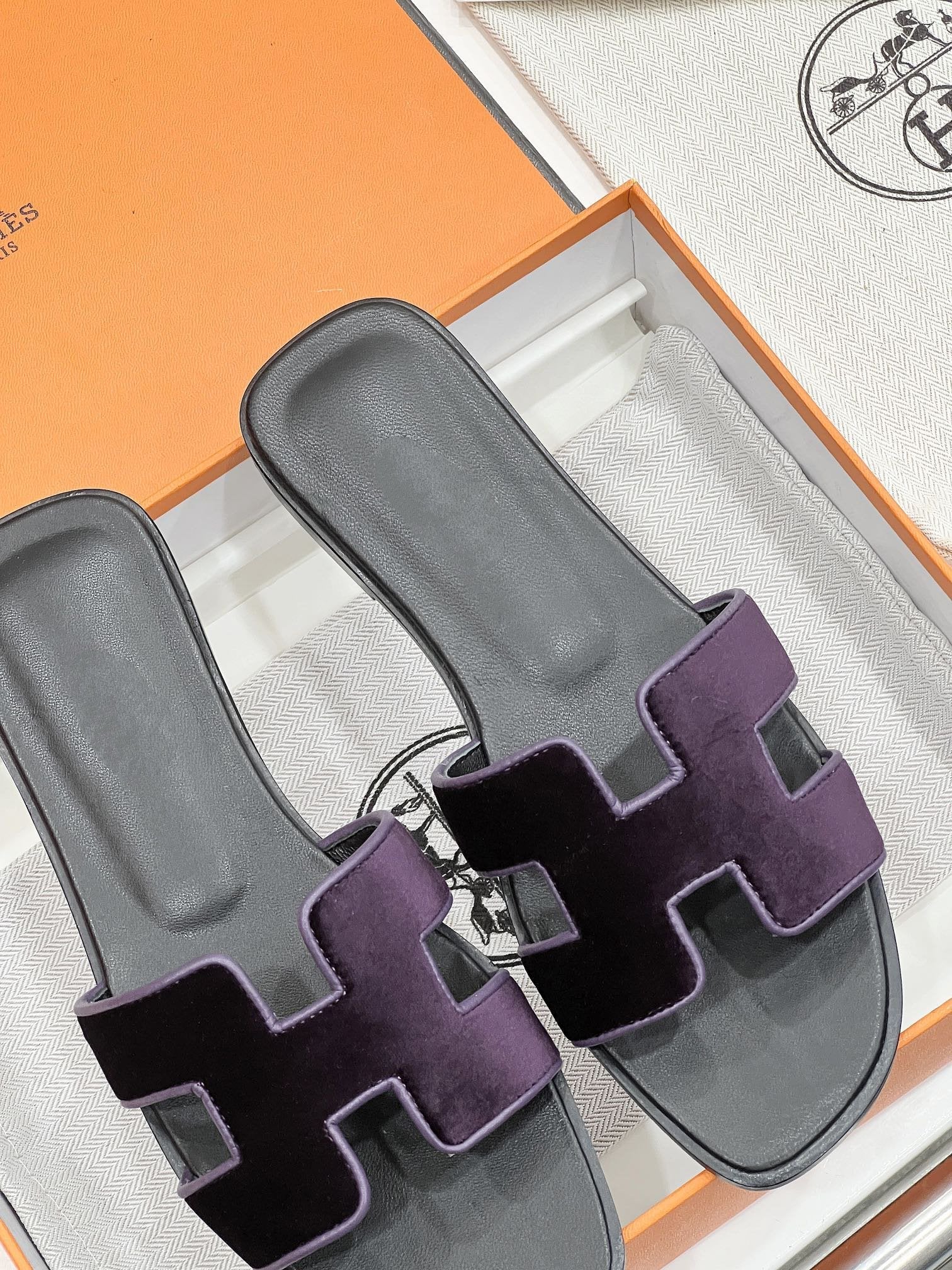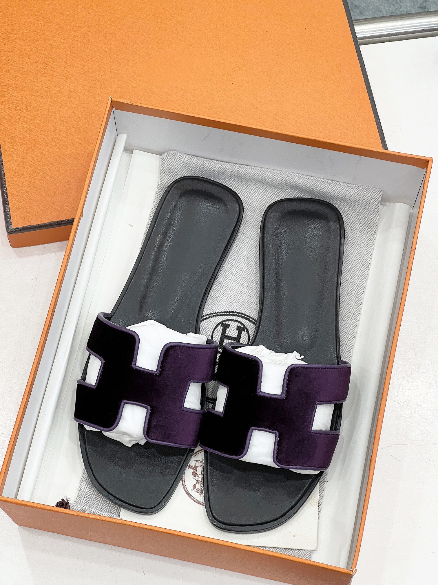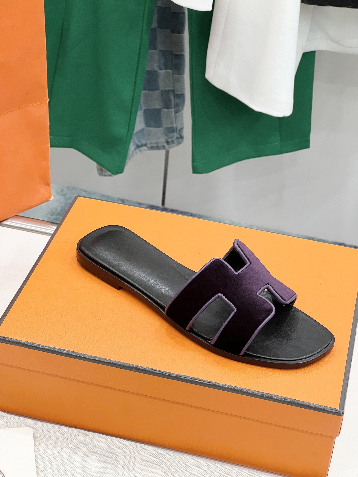 - Material: Sandal in velvet goatskin with iconic "H" cut-out.