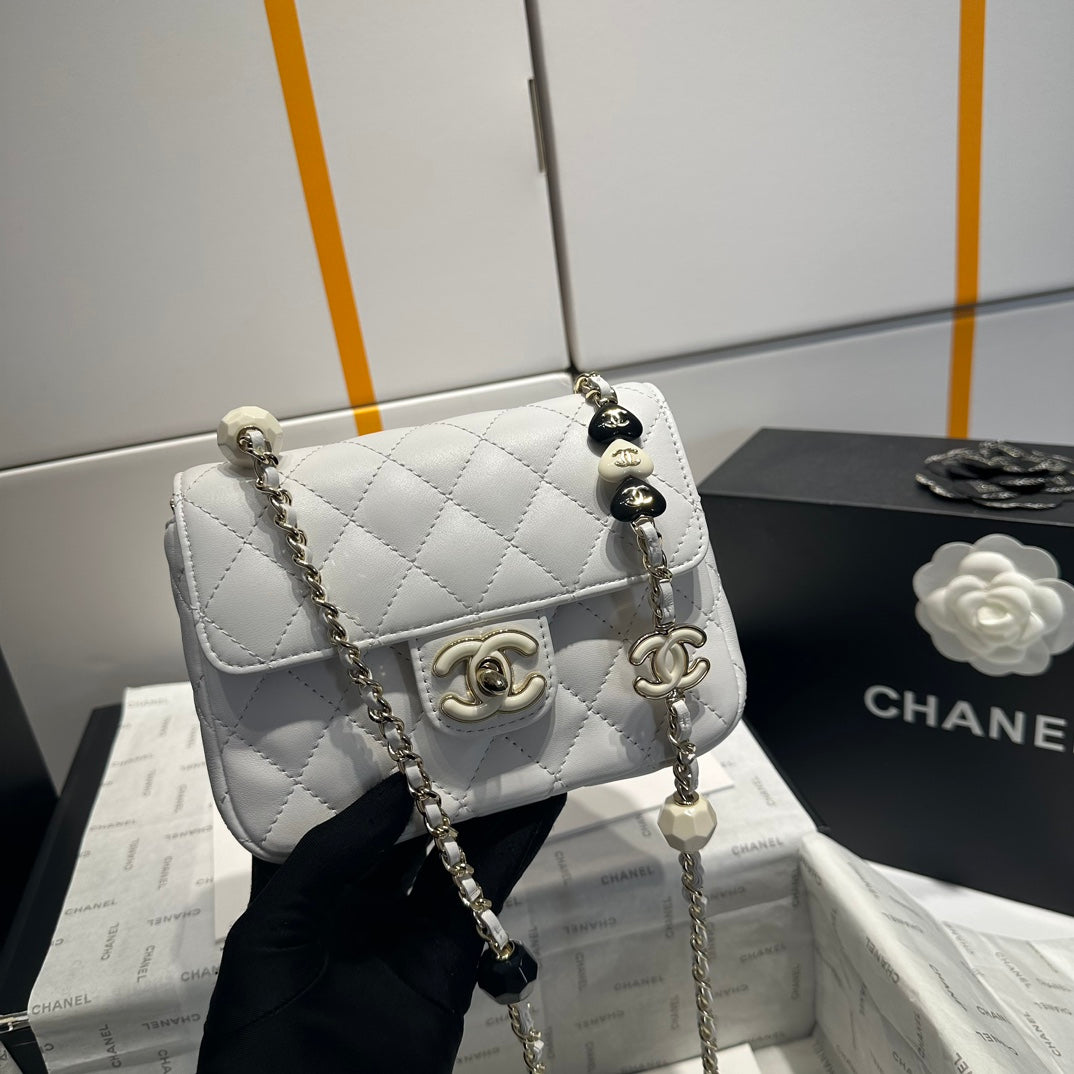 23P Flap Bag 16cm Grey Calfskin Siver Hardware