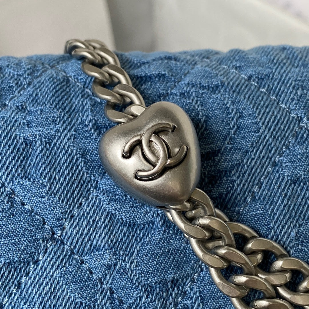 23P Flap Bag 19cm Denim Silver Hardware