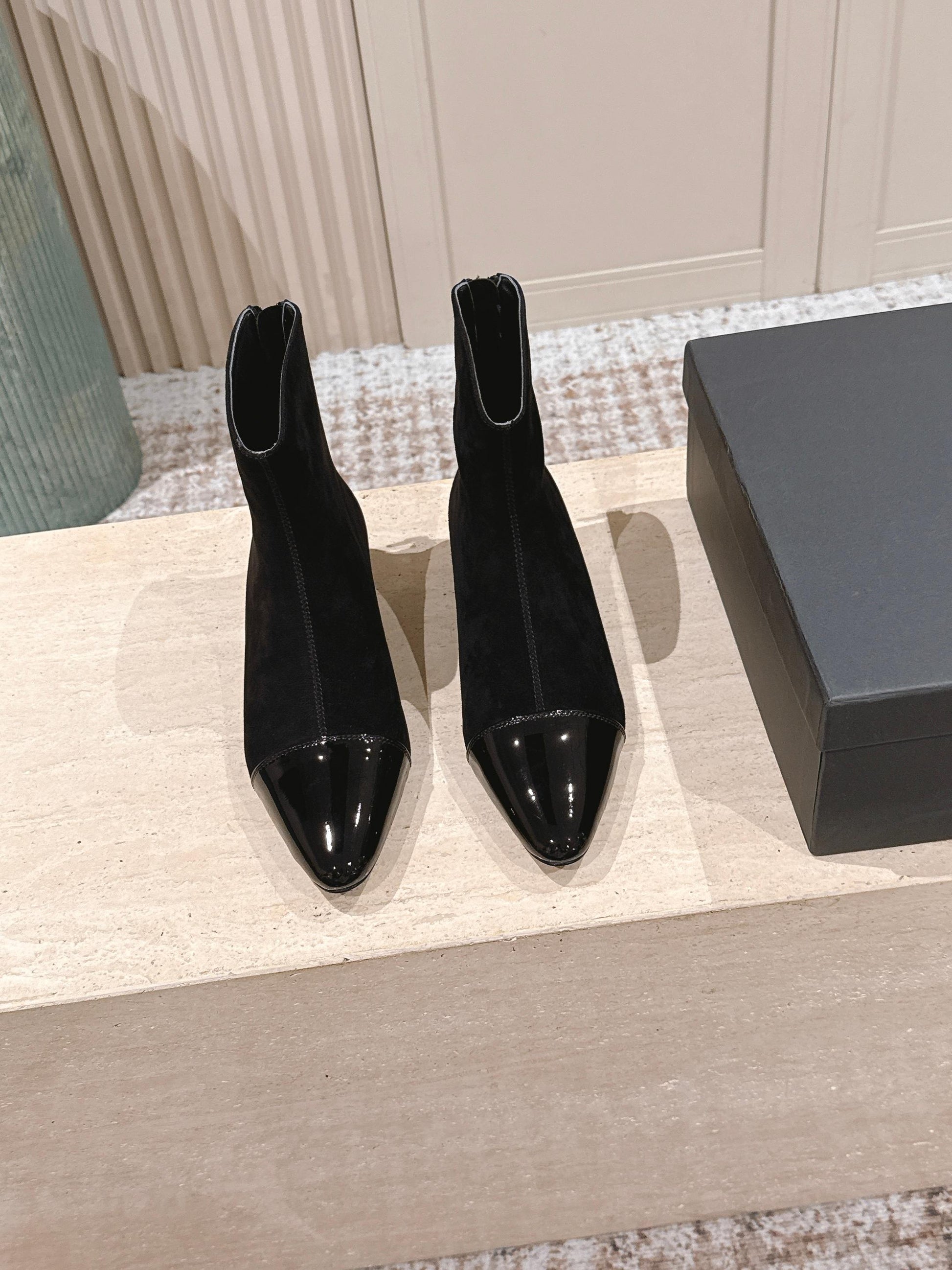 Alaia 2025 Ankle Boot With Patent Leather Cap Toe Black Suede 556086